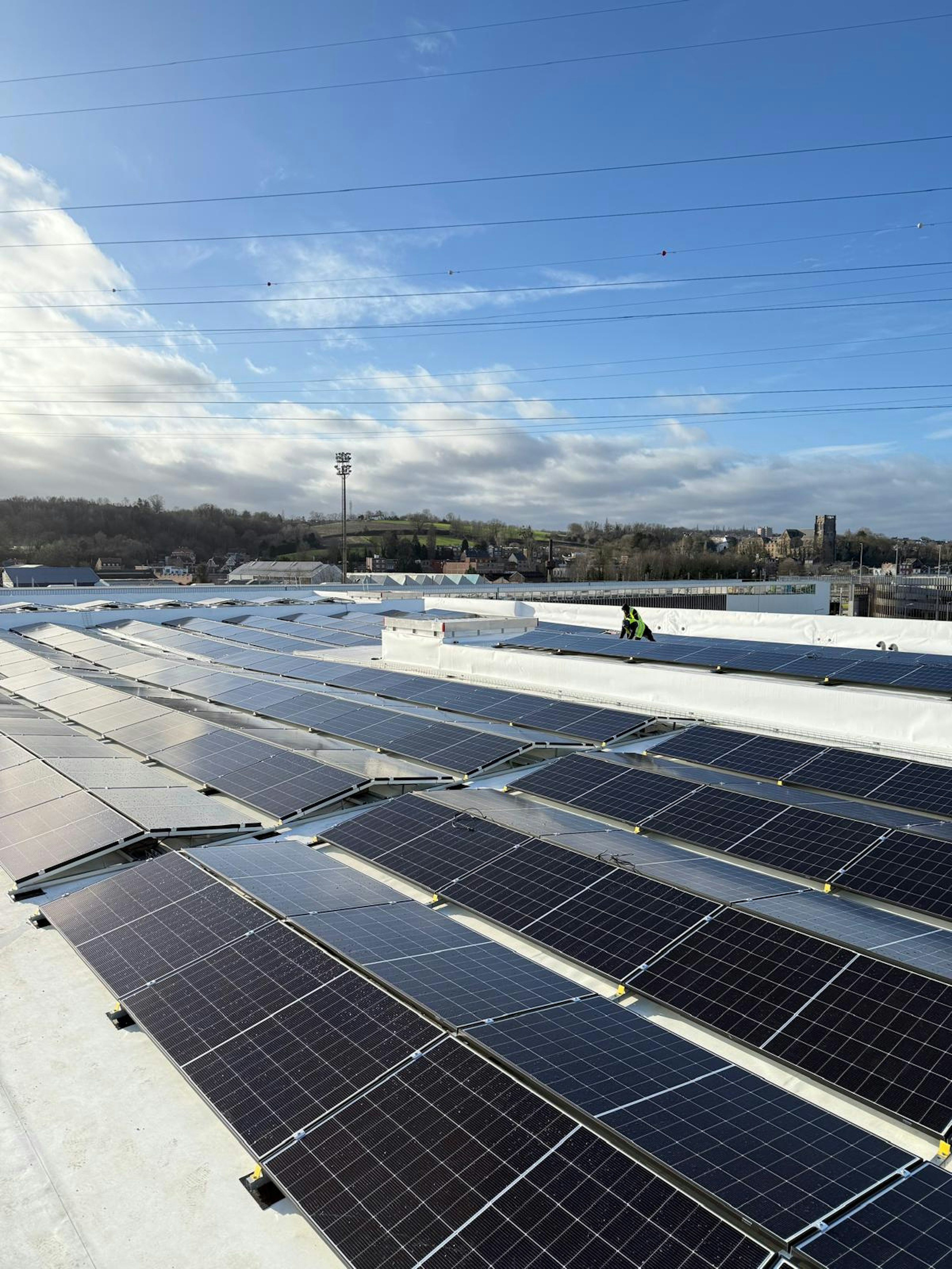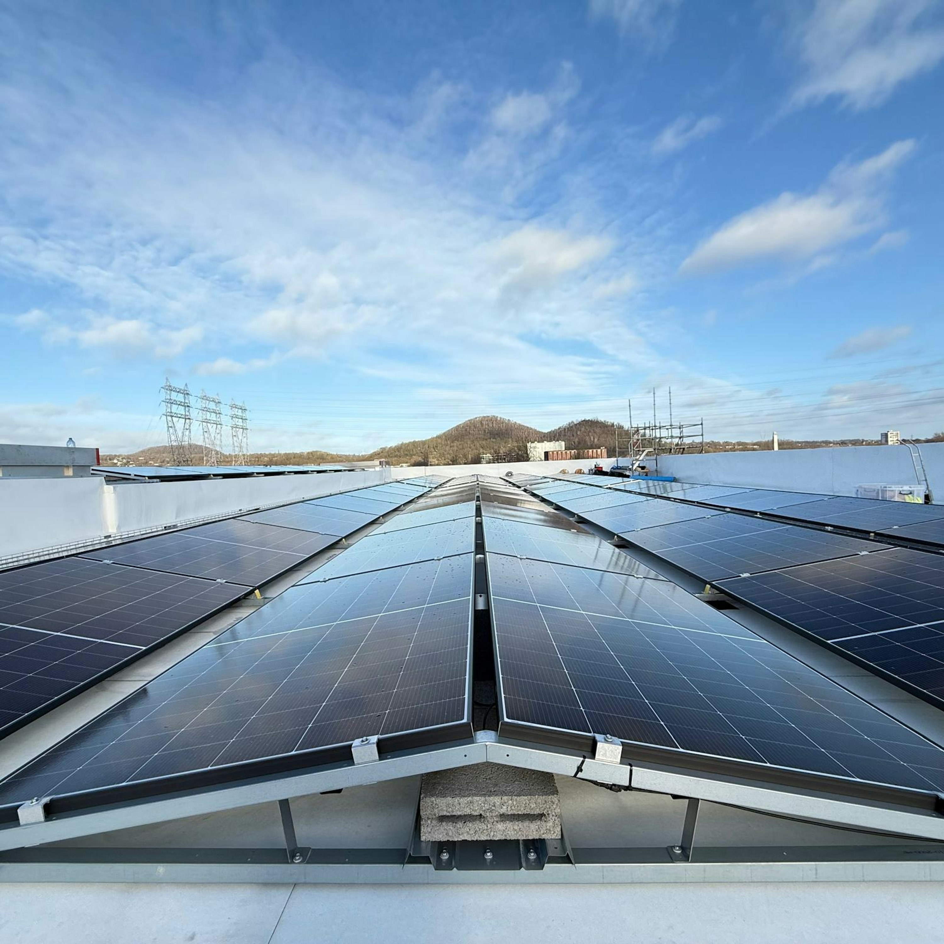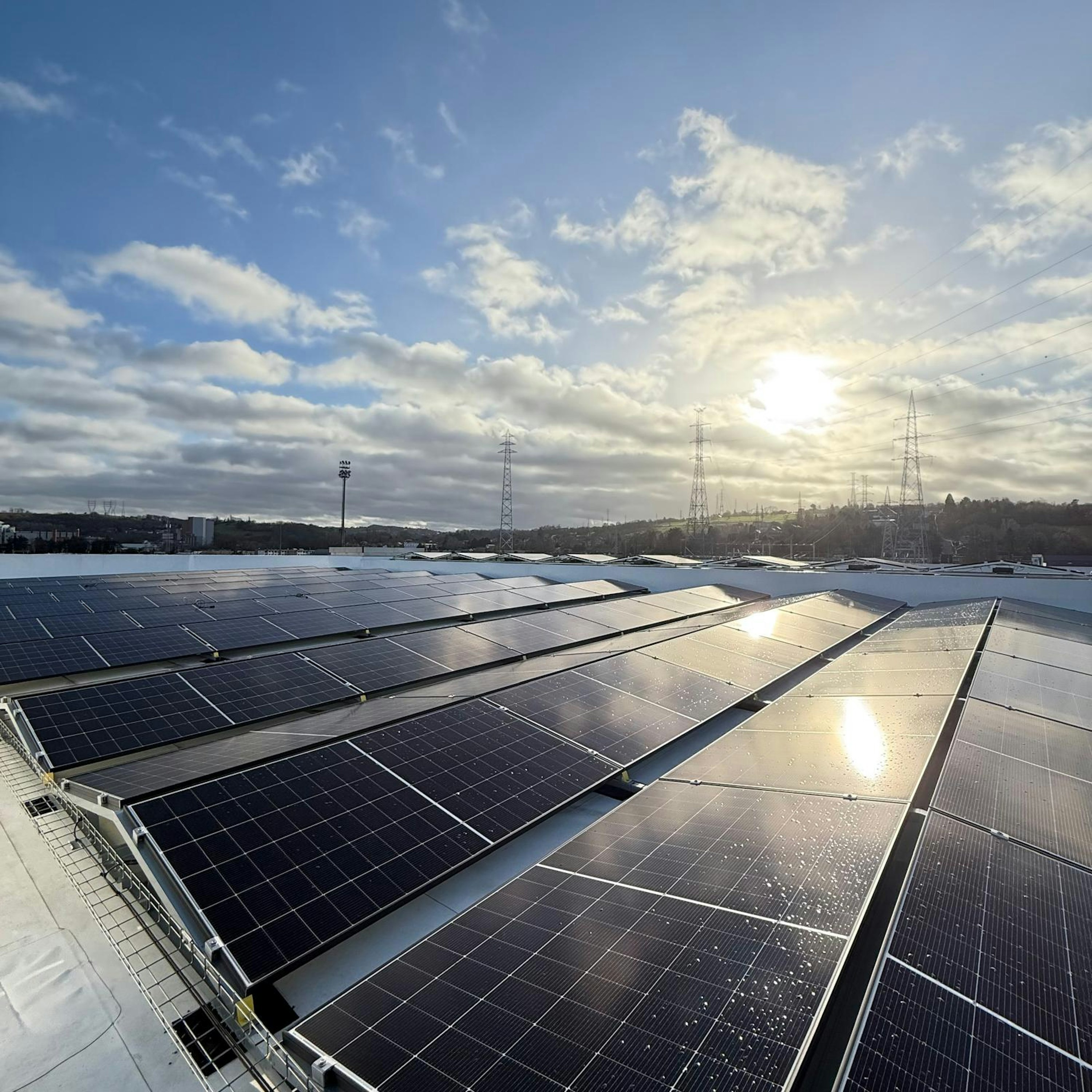 Vous pourrez y voir nos installations : - 1172 panneaux photovoltaïques (dont 980 sur toit plat et 192 sur façade). - Une batterie industrielle de 200 kWh pour le stockage. - 15 bornes de recharge de 22 kW pour véhicules électriques.