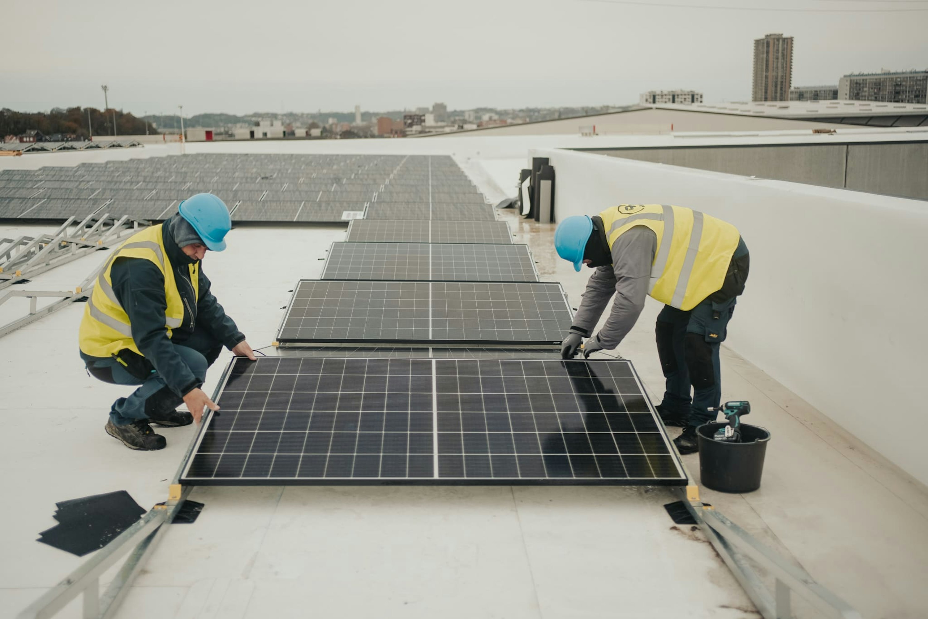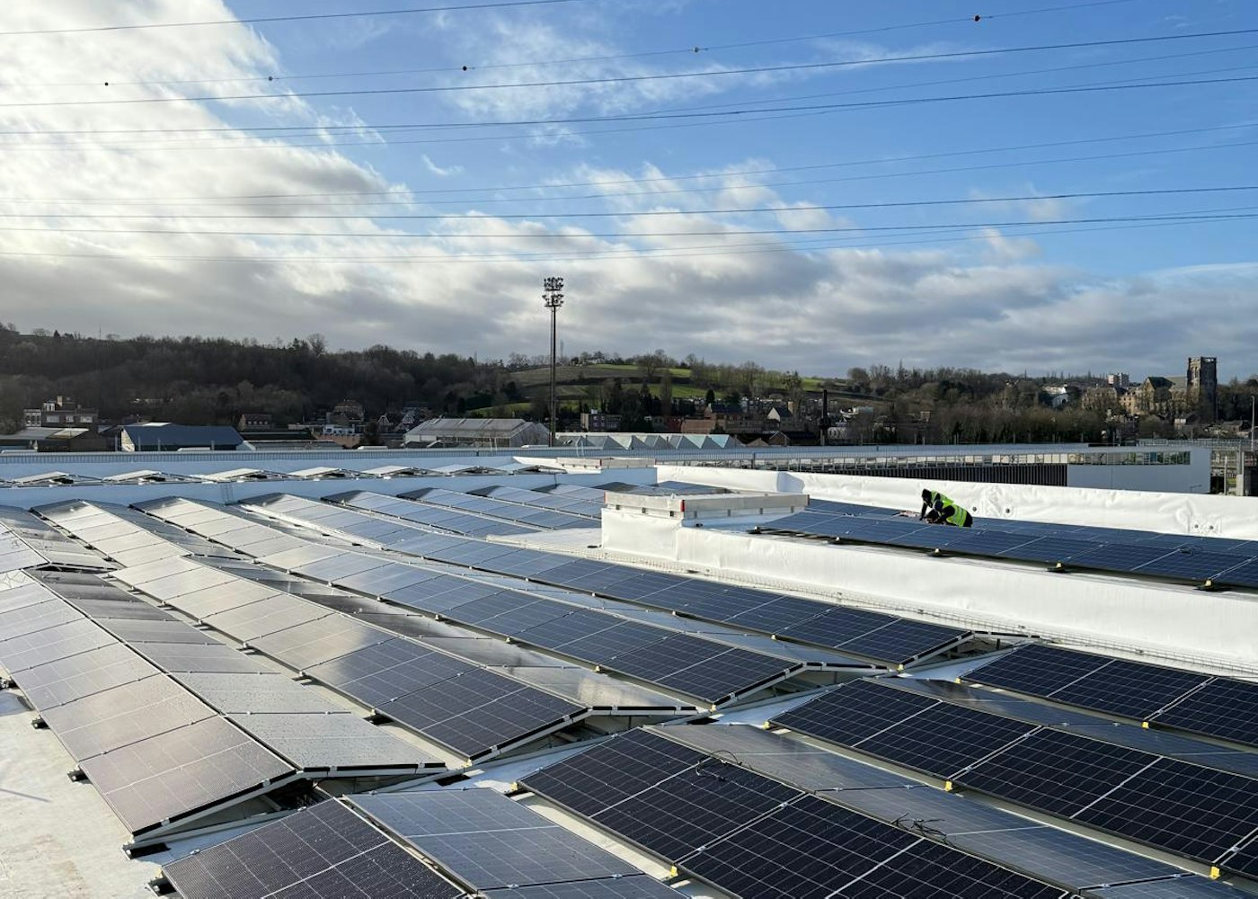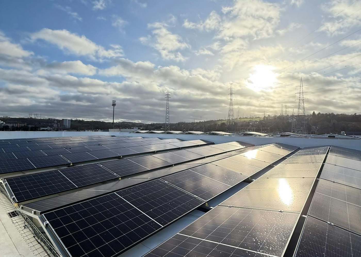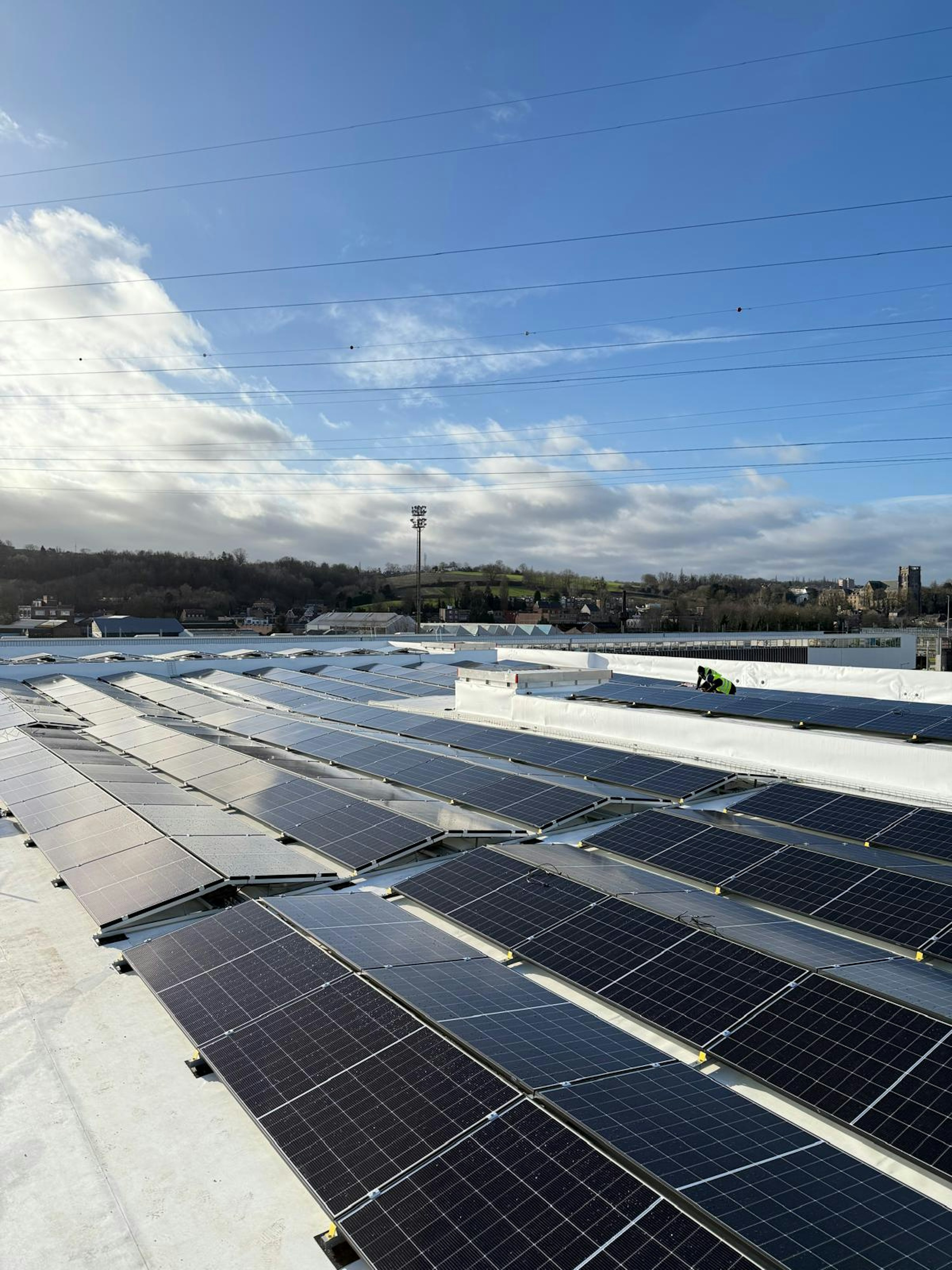Vous pourrez y voir nos installations : - 1172 panneaux photovoltaïques (dont 980 sur toit plat et 192 sur façade). - Une batterie industrielle de 200 kWh pour le stockage. - 15 bornes de recharge de 22 kW pour véhicules électriques.